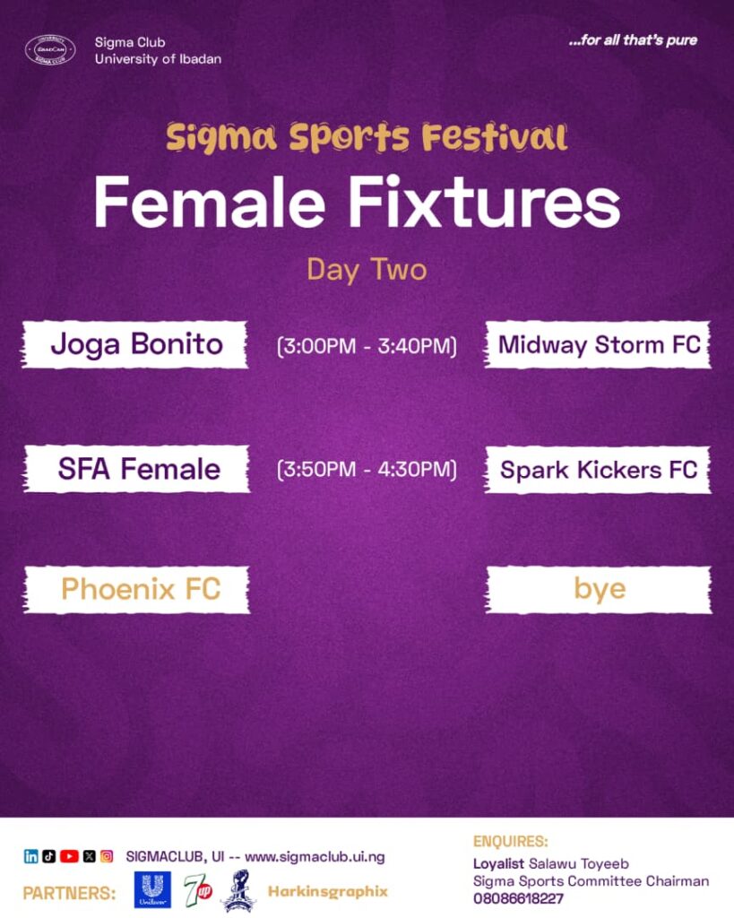 Monday, September 21, 2025, marked Day Five of the Sigma Sports Festival, and with it came Matchday Two of the inaugural female edition—an edition that has so far more than lived up to the hype and delivered goals galore.